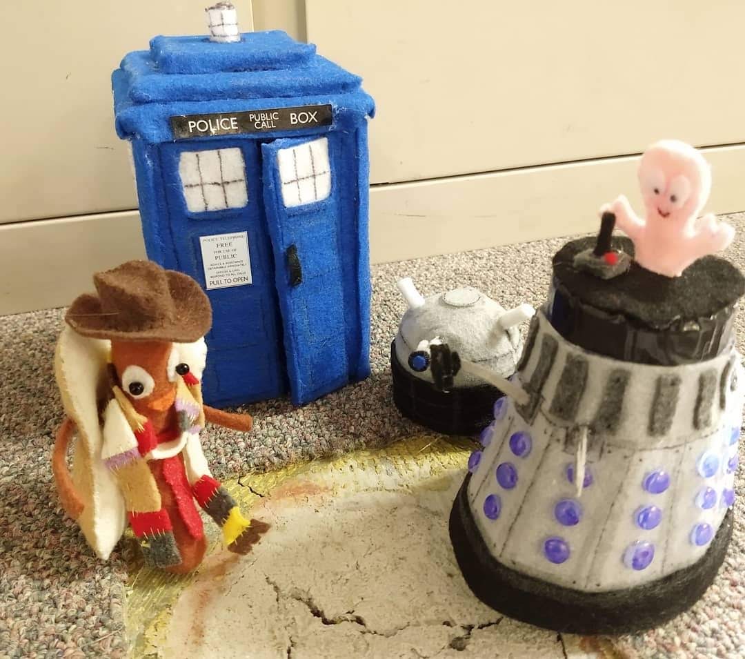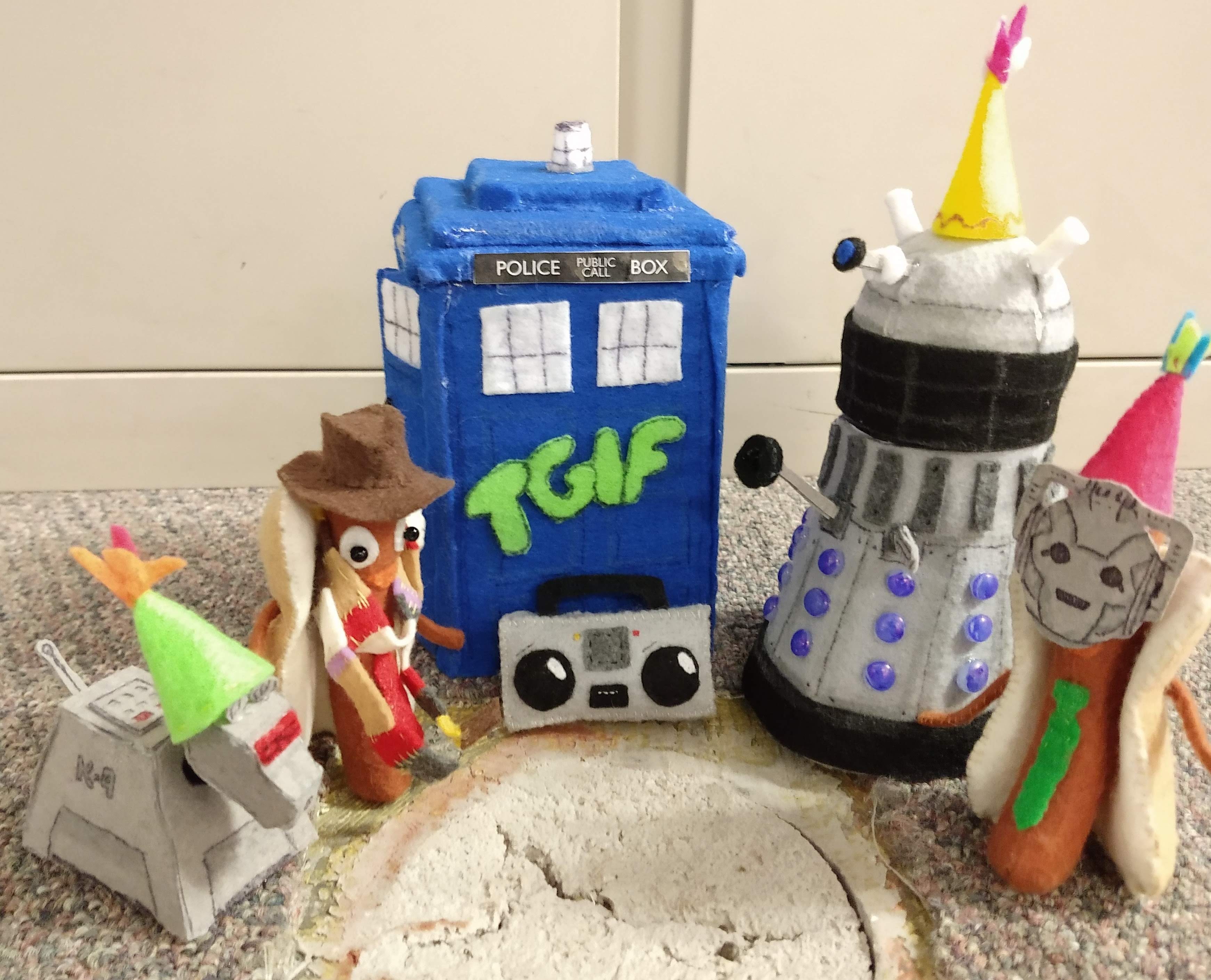 A Doctor Who theme was destined to happen on the floor hole! This was a week full of exciting reveals, including a Dalek with removable head. The week started with the simple arrival of the TARDIS. Little did I know, the blue police box isn’t as recognizable as I’d expected for folks working in the building. (We can’t all be Doctor Who fans, I know…but onward we go!)